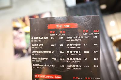 在「夏捌月午餐」中點選了「紐約客蒜泥牛扒」($61),再補多三塊錢把餐飲轉成「凍樽仔Nestle朱古力」後,我便在餐廳較為逼狹的座位中等待我的午餐。